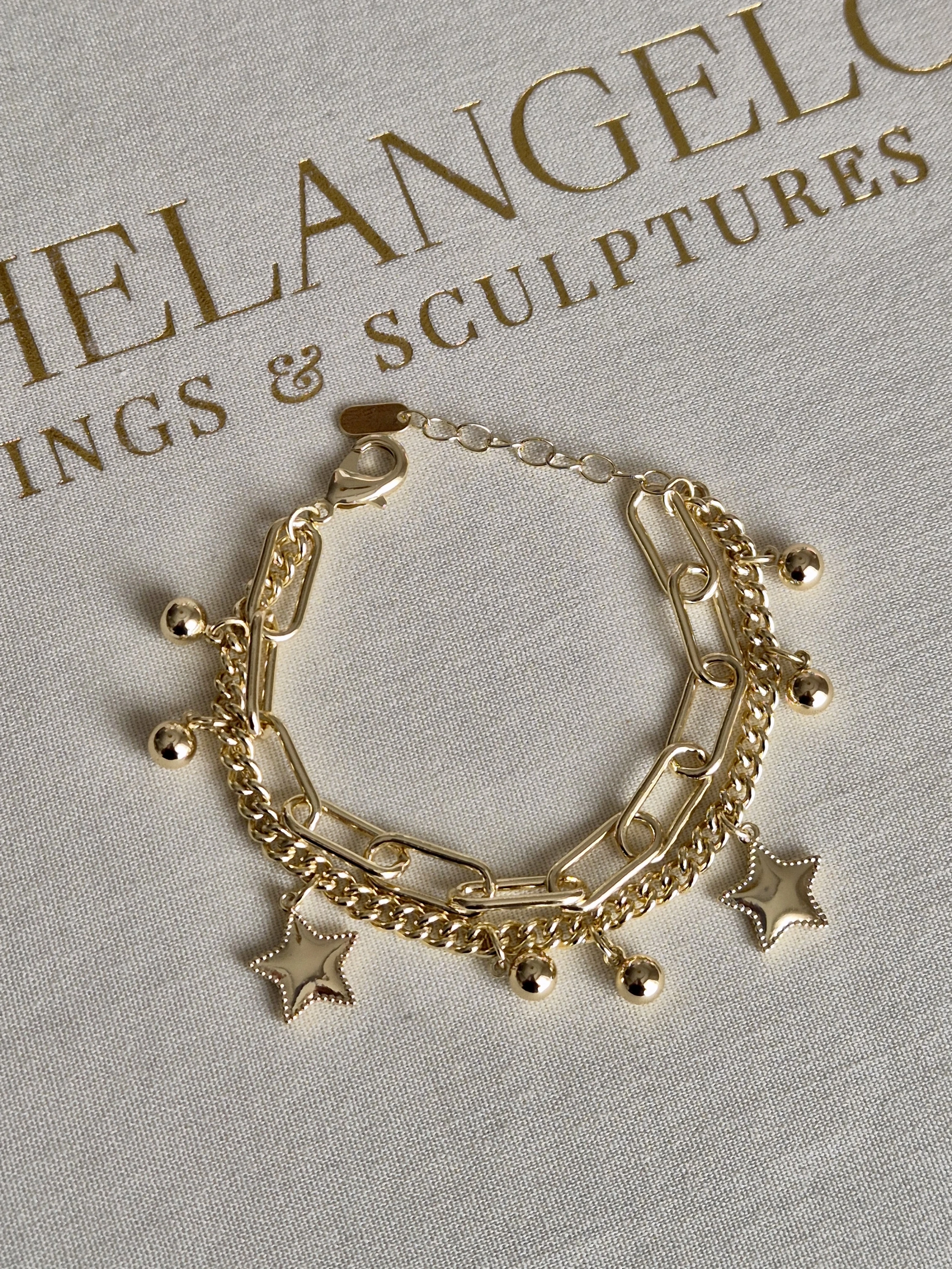 VIP Yıldız Detaylı İkili Bileklik -Çelik